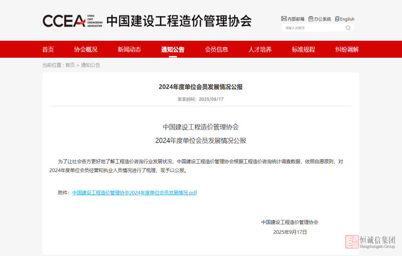 2024年度全國(guó)造價(jià)咨詢(xún)百?gòu)?qiáng)企業(yè)公布 | 北京恒誠(chéng)信蟬聯(lián)全國(guó)前十